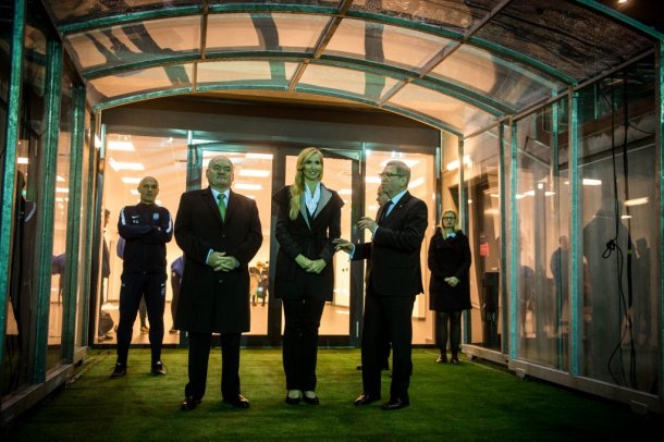 Ünnepélyes keretek között szerda este felavatták a Haladás-Swietelsky új labdarúgó-stadionját Szombathelyen a Rohonci úton. A zöld-fehérek az eszéki NK Osiek csapatát fogadták a gálamérkőzésen. Az ünnepségen Szabó Tünde államtitkár mondott beszédet. Fotó: Botár Gergely/kormany.hu