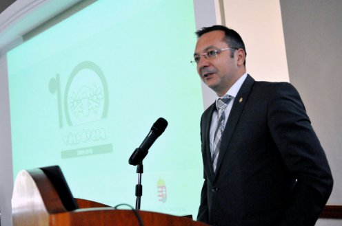 Román István a Zöld Óvoda pályázat 10. évfordulójához kapcsolódó programsorozat rendezvényén 13 Zöld Óvoda részére adta át a bázisintézményi megbízóleveleket.